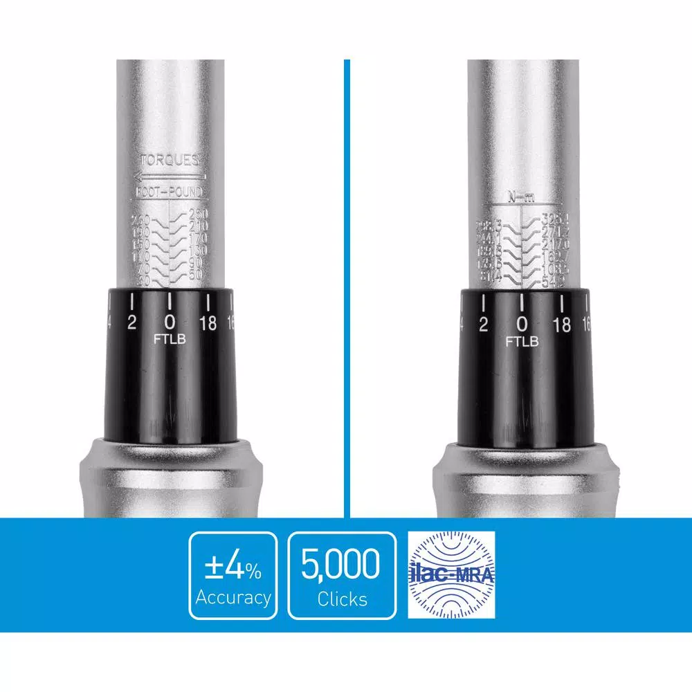 - Dual torque range: 30-250 ft-lbs and 54.2-325.4 Nm, tolerance +/- 4%