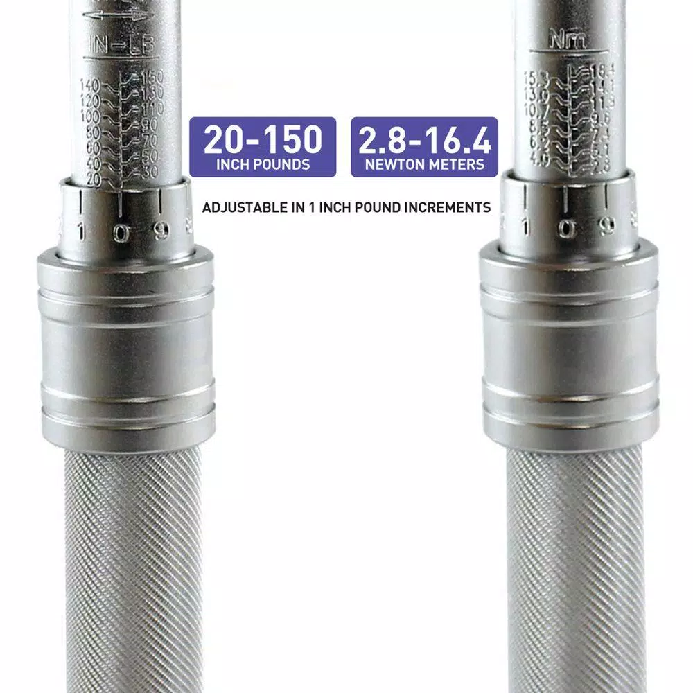 - 1/4 in. drive with torque range of 30 to 150 in. lbs. or 4 to 16.4 Nm