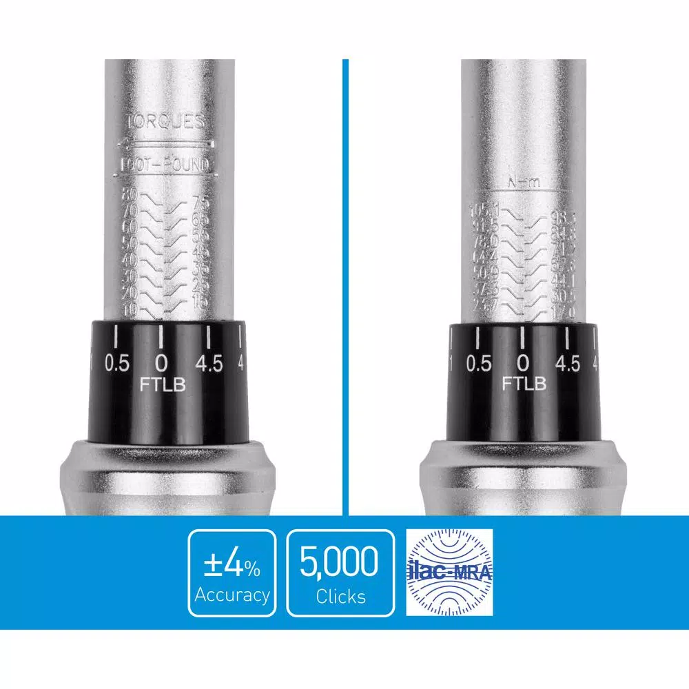 - Dual torque range: 10-80 ft-lbs and 17-105.1 Nm, tolerance +/- 4%