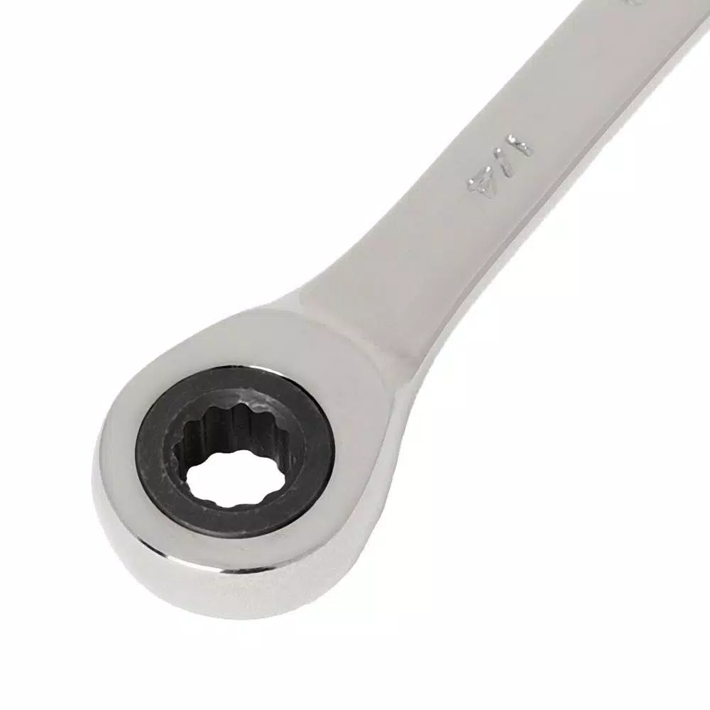 Open Ended Ratcheting Wrench allows ratcheting of nuts and bolts without removing wrench from fastener, making jobs faster and easier. Ratcheting speed with the access of an open end wrench. Ratcheting box end needs as little as 5ยฐ to move fasteners versus 30ยฐ for standard box end wrenches. Up to 25% more torque with less fastener rounding.