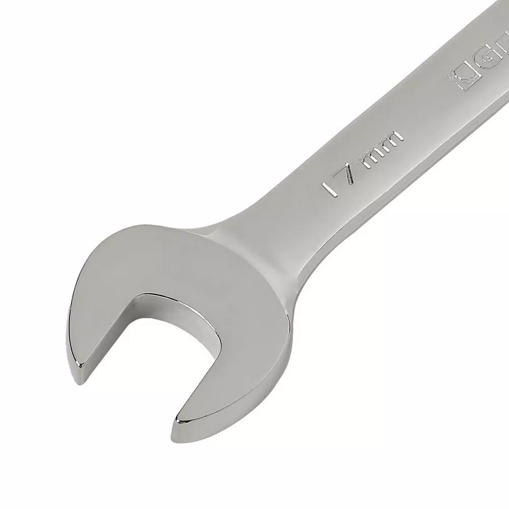 The GearWrench 11 mm Flex-Head Combination Ratcheting Wrench features a full chrome polish finish for durability and corrosion resistance. Ratcheting box end increases productivity while reducing hand fatigue. The box end utilizes Surface Drive technology which provides off-corner loading for better grip and reduced fastener rounding.