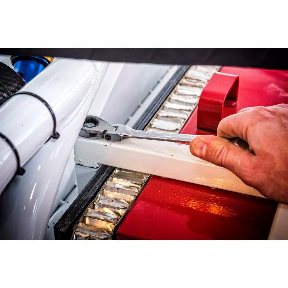 The GearWrench 21mm Flex-Head Combination Ratcheting Wrench features a full chrome polish finish for durability and corrosion resistance. Ratcheting box end increases productivity while reducing hand fatigue. The box end utilizes Surface Drive technology which provides off-corner loading for better grip and reduced fastener rounding.