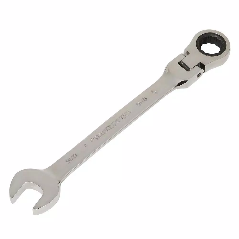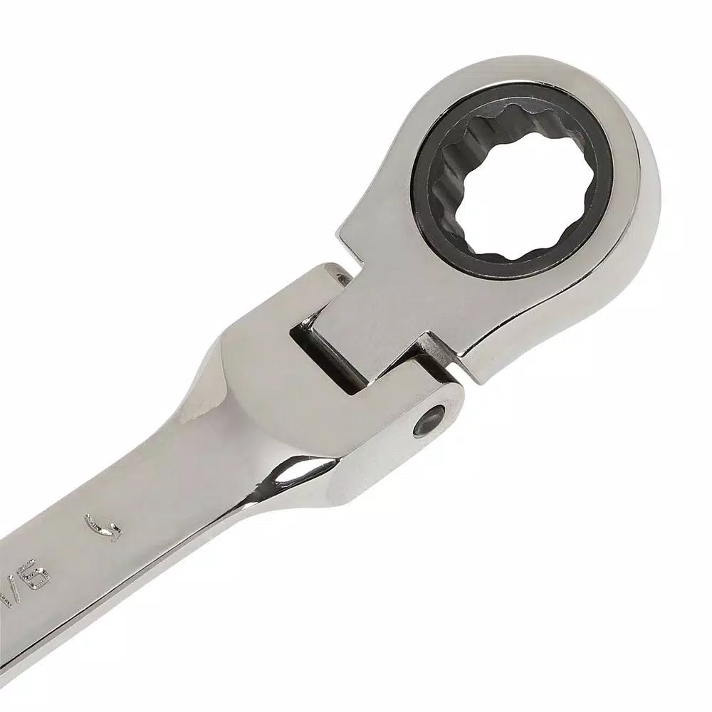 The GearWrench 9/16 in. Flex-Head Combination Ratcheting Wrench features a full chrome polish finish for durability and corrosion resistance. Ratcheting box end increases productivity while reducing hand fatigue. The box end utilizes Surface Drive technology which provides off-corner loading for better grip and reduced fastener rounding.