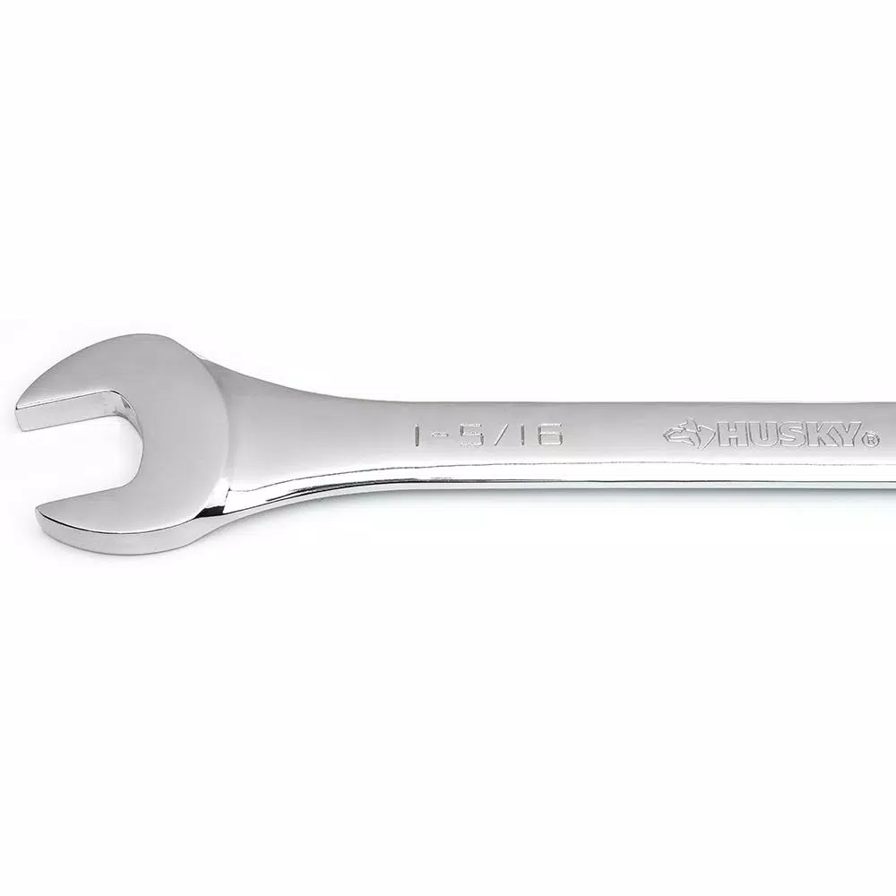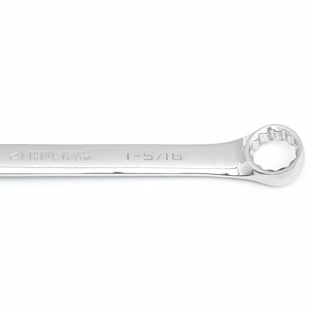 Husky combination wrenches are manufactured from Chrome Alloy steel and heat treated for added strength and wear protection; providing durability for a lifetime of hard use. Both the open and box end features chamfered lead-ins for quick and easy placement onto fasteners every time. Their polished chrome finish resist rust and corrosion and easily wipes clean of oil and dirt.