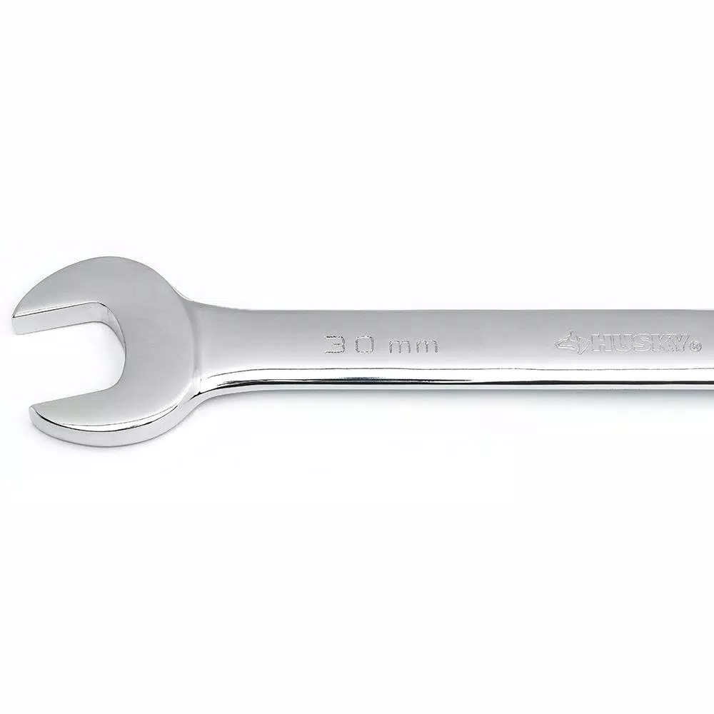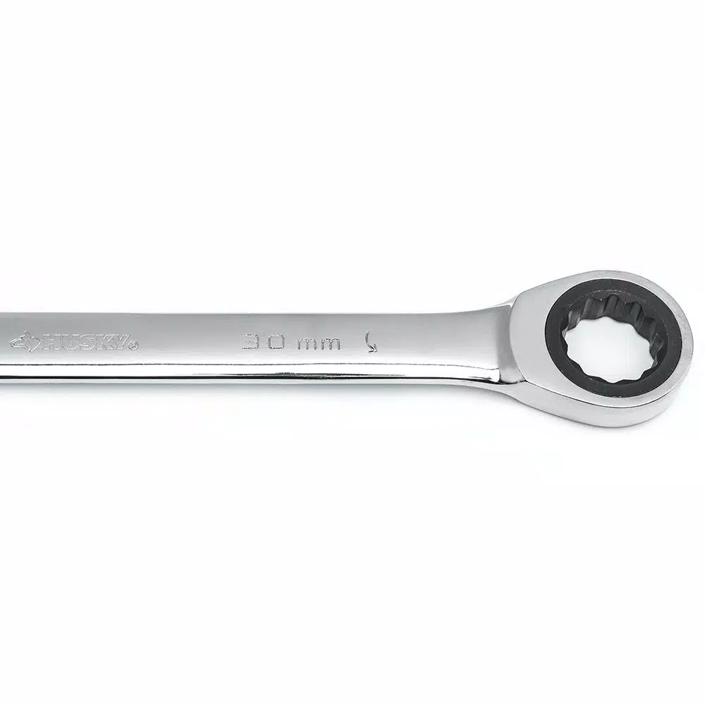 Huskyโs ratcheting combination wrenches feature a 12-point, 72-tooth ratcheting box end that needs only 5-degree to engage fasteners. Each wrench is manufactured from Chrome Alloy steel and heat treated for added strength and wear protection; providing durability for a lifetime of hard use. Their polished chrome finish resists rust and corrosion and easily wipes clean of oil and dirt. Both the open and box end features chamfered lead-ins for quick and easy placement onto fasteners every time.