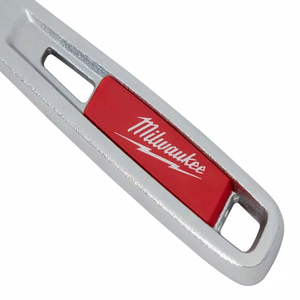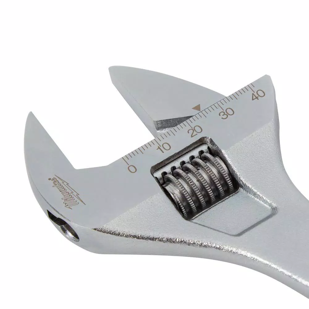 Milwaukee 48-22-7508, 8 in. Wide Jaw Adjustable wrench has been designed from the ground up to offer maximum productivity to the professional user. The 8 in. Wide Jaw adjustable wrench features a wide jaw design for increased capacity in confined environments as well as a proprietary adjustment screw for jaws that wonβt back off. The ergonomic handle form has been designed for maximum comfort and wont dig into the palms and is chrome plated for rust protection and maximum tool life. The wrenches parallel jaw design wont slip or damage finish surfaces and a tether-ready handle loop makes the Milwaukee 48-22-7508 perfect for the toughest of jobsites. Milwaukee stands behind their product and offers a Limited Lifetime Warranty with all adjustable wrenches. The Milwaukee 48-22-7508 includes (1) 48-22-7508 8 in. Wide Jaw Adjustable Wrench.