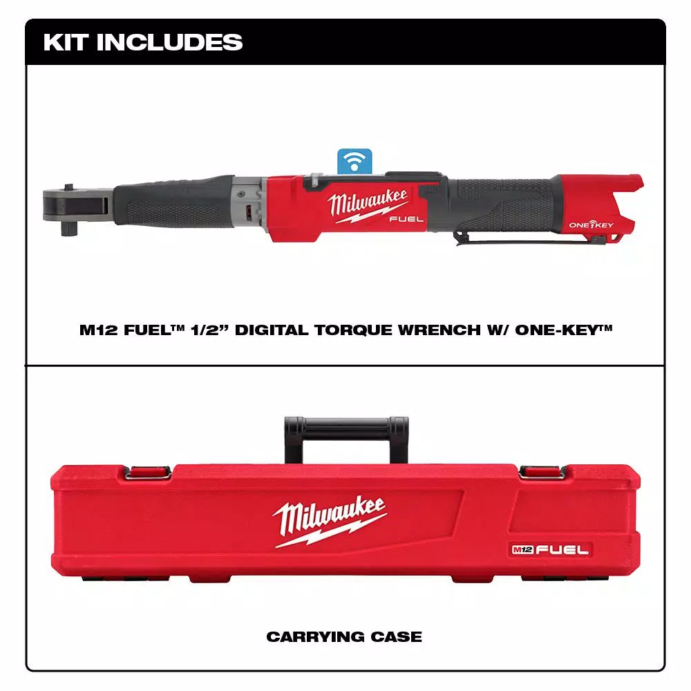 - Includes: 1 M12 FUEL 1/2 in. digital torque wrench with ONE-KEY (2466-20), 1 carrying case, 1 certificate of calibration