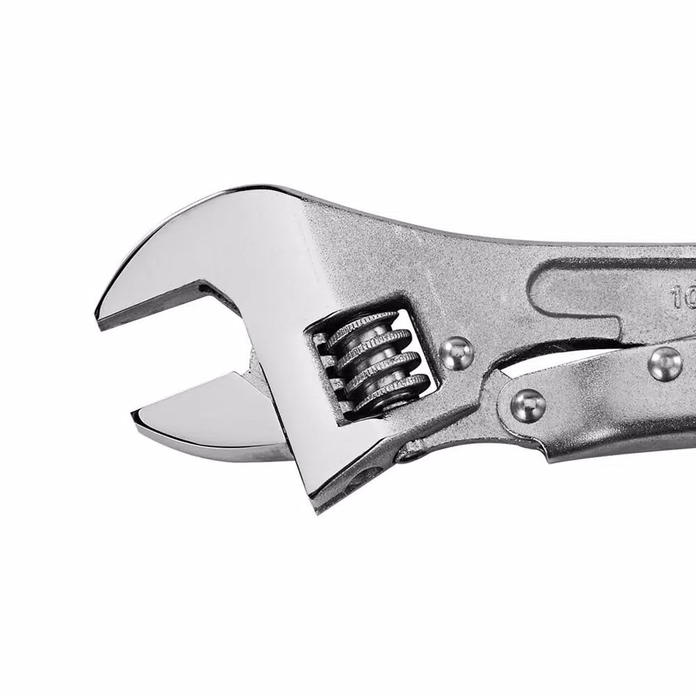 The anti-slip mechanism locks the movable jaw and tightly grips onto fasteners. It is constructed form forged chrome vanadium steel for strength and durability. A wide locking handle allows for a secure grip.