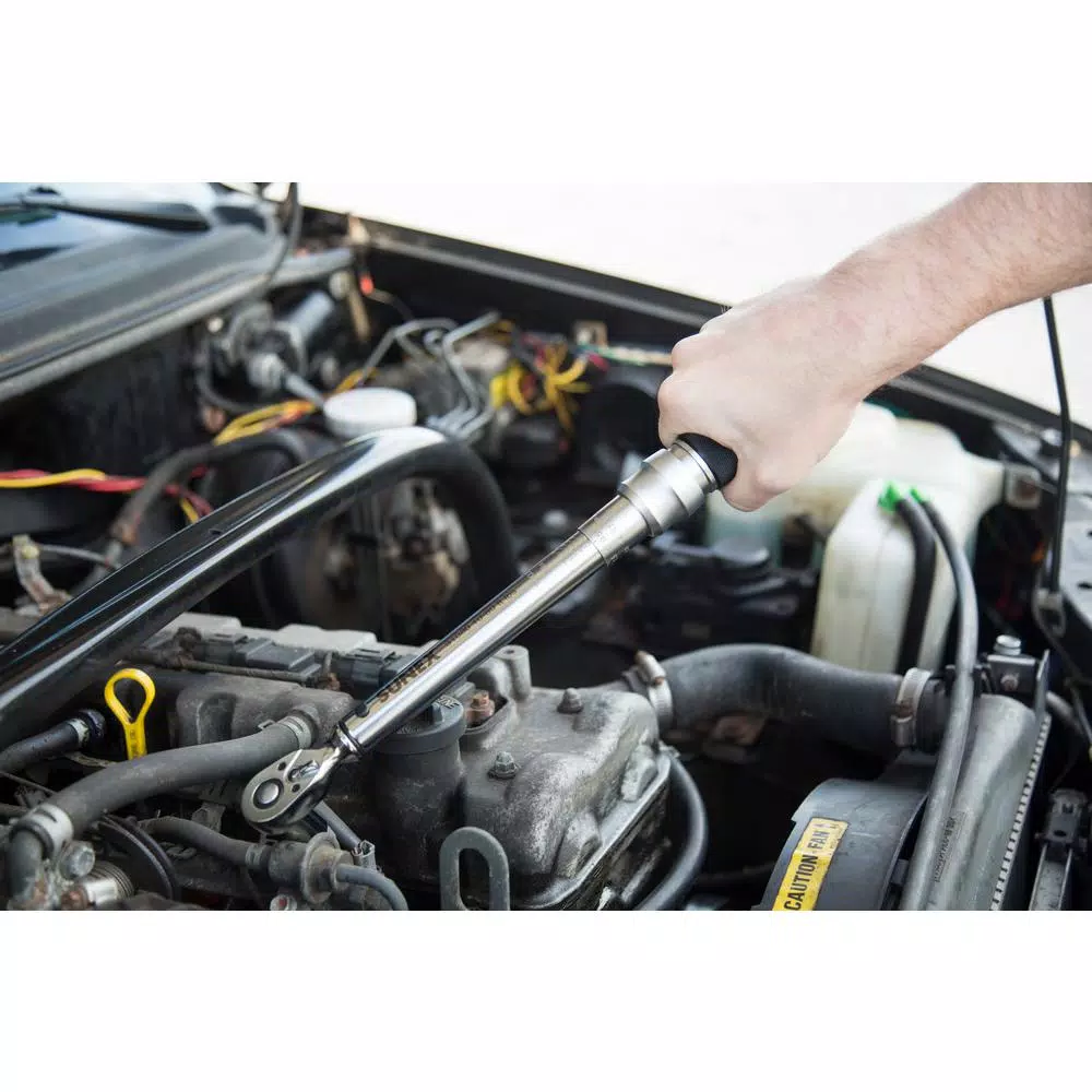 The Sunex 31080 3/8 in. Drive 10-80 ft.-lbs. 48T Torque Wrench has a 48 tooth ratcheting mechanism that is accurate to Β±3% clockwise and Β±6% counterclockwise. It is made of high quality internal components for professional performance and has a heat-treated tube with a knurled aluminum handle for a better grip. The Sunex 31080 is designed to signal the desired torque by an audible click and impulse. This torque wrench comes in a convenient storage case and includes a certificate of calibration.